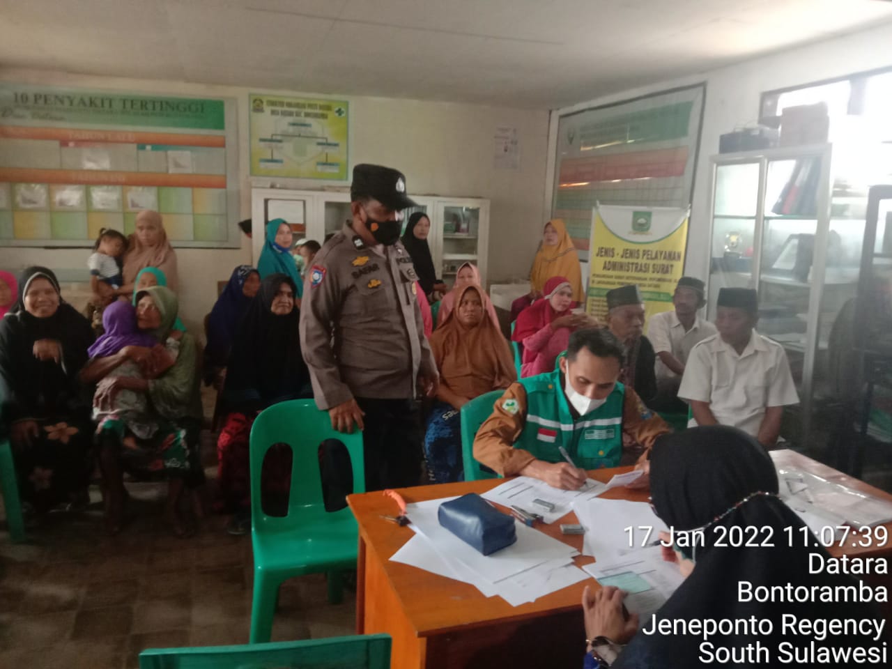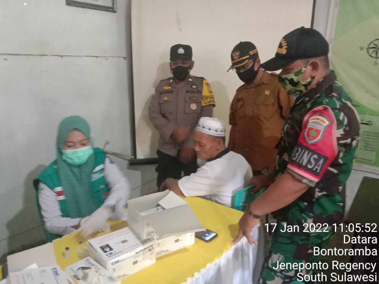 PENJURU. ID | Jeneponto – Dalam rangka program percepatan vaksinisasi di wilayah hukum Polres Jeneponto, Pemerintah Desa Datara menggelar pemberian vaksinasi, Senin (17/1/2022)