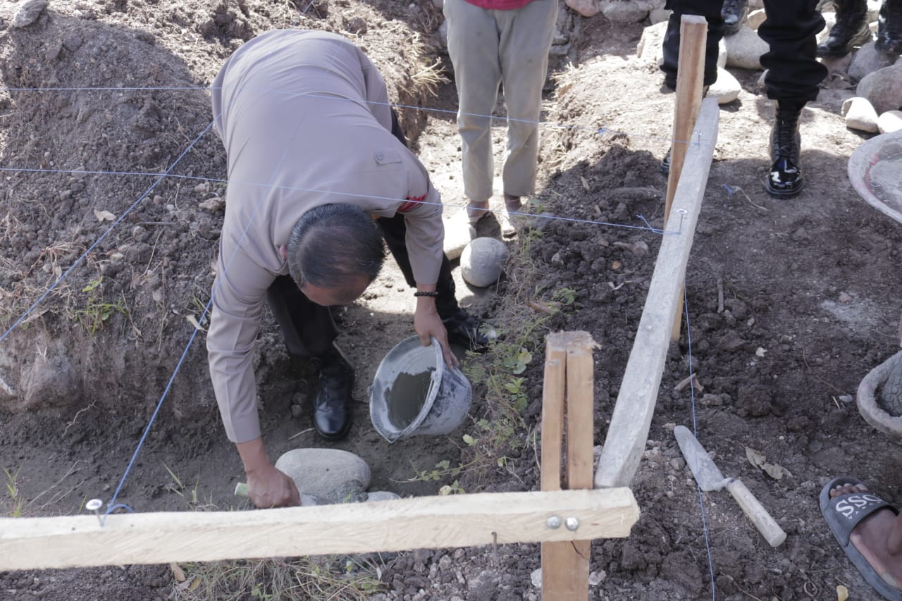 PENJURU. ID | Jeneponto – Kapolres Jeneponto AKBP Yudha Kesit Dwijayanto, SH, SIK, menghadiri Peletakan batu pertama pembangunan masjid di Mapolsek Binamu, Rabu (13/10/2021)