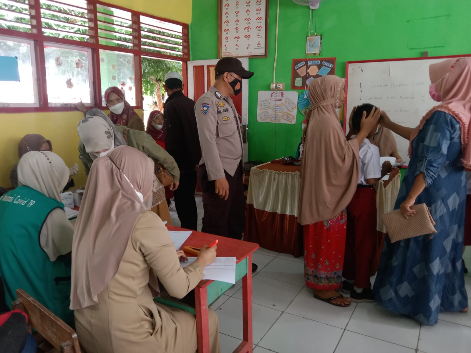 Aipda M.Arief di depan peserta vaksin menghimbau dan mengajak anak sekolah juga masyarakat untuk mengikuti vaksinasi dalam meningkatkan HERD IMMUNITY (kekebalan tubuh bersama) dimasa pandemi covid-19.
