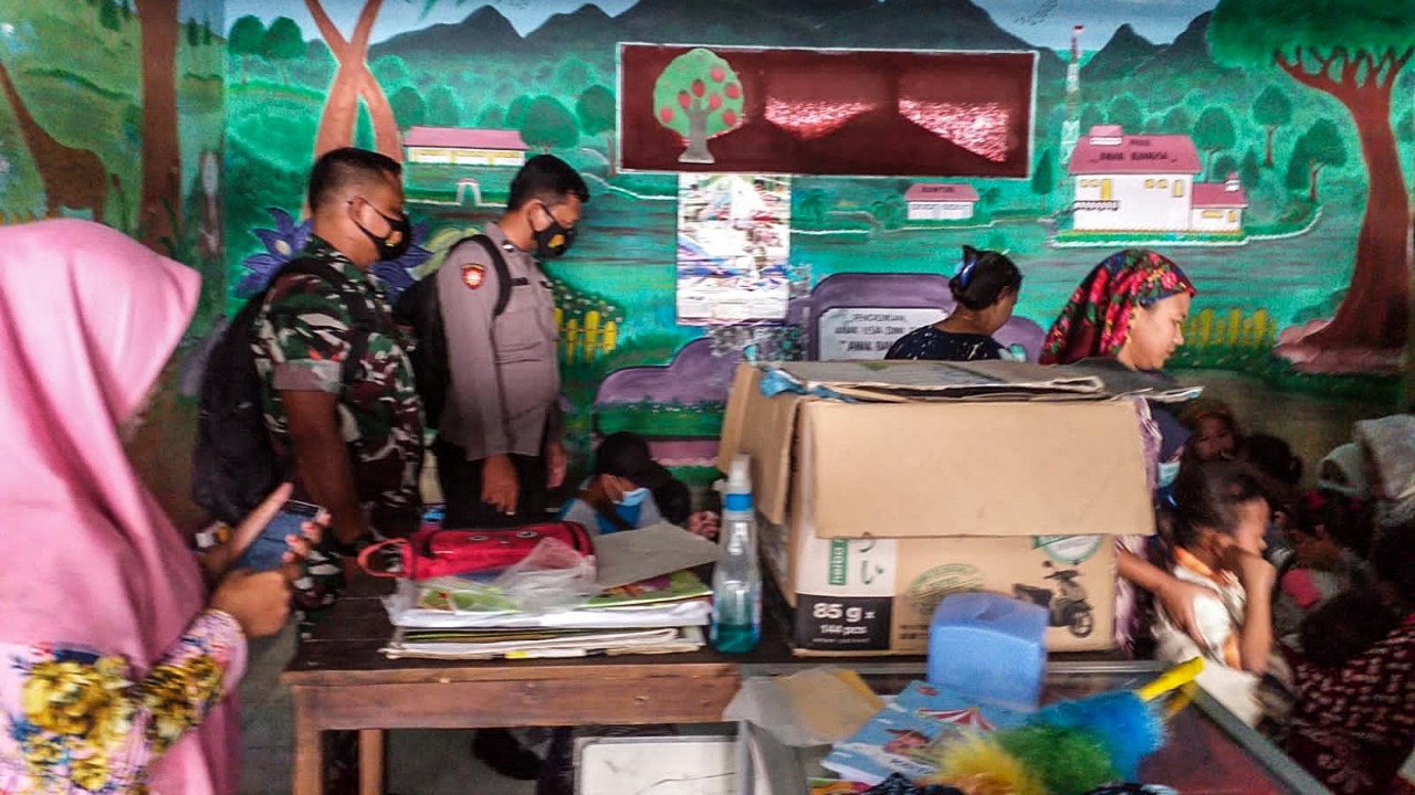 PENJURU.ID | Probolinggo – Babinkamtibmas Desa Gili Ketapang Polsek Sumberasih Polres Probolinggo Kota Aipda Sujatmiko, SH melaksanakan pengamanan dan monitoring pelaksanaan pemberian bias tetanus difteri dan vaksinasi Covid-19 bagi sekolah SD, sekolah Paud yang ada di Gili Ketapang Kec. Sumberasih Kab. Probolinggo, Sabtu (12/03/2022).
