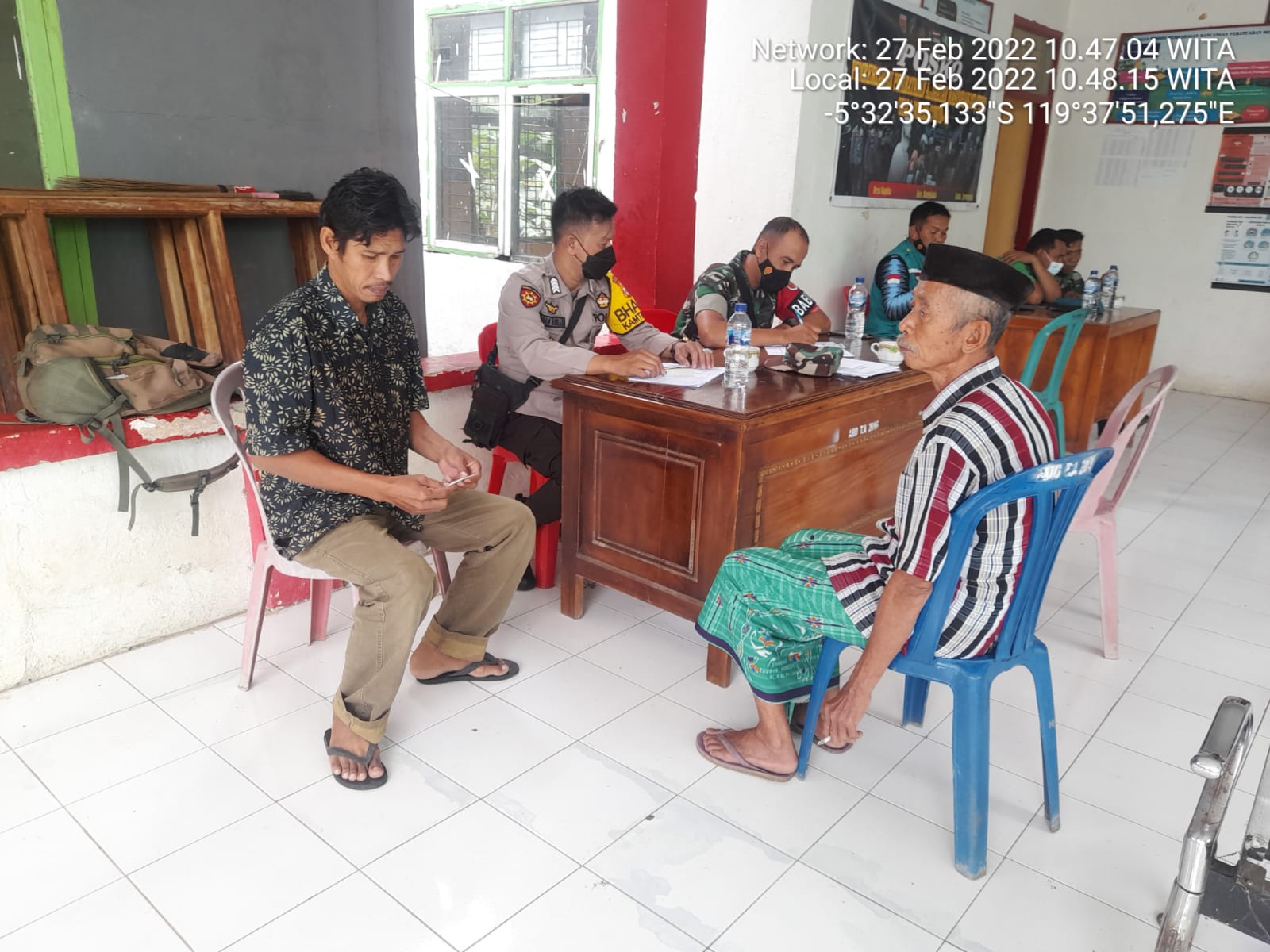 PENJURU. ID | Jeneponto – Bhabinkamtibmas Aipda Irwan Abbas bersama Babinsa Serda Tamrin memantau kegiatan Vaksinasi di kantor Desa Kapita Kecamatan Bangkala, Kabupaten Jeneponto, Minggu (27/2/2022)