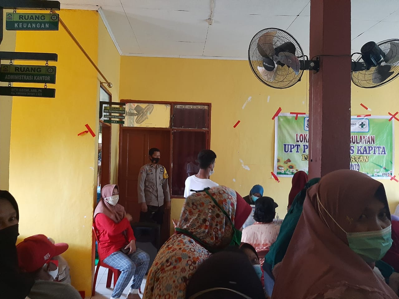 Giat sambang oleh Aipda Haris dalam rangka melakukan pemantauan pelaksanaan Vaksin COVID-19 yang dilaksanakan oleh tim Puskesmas Kapita.