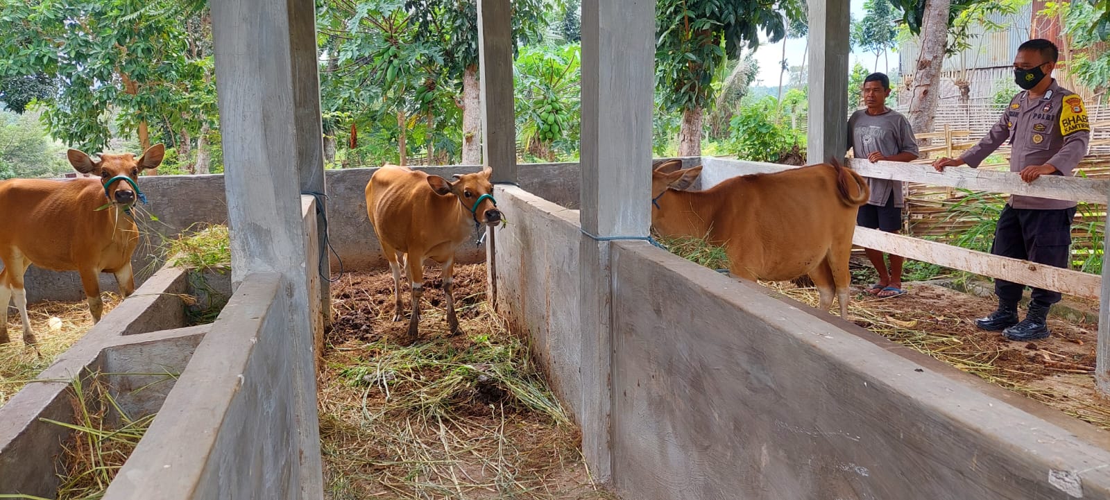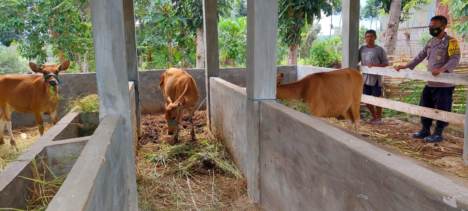 Terpantau, Bripka Nuriadi selaku Bhabinkamtibmas juga memantau kesehatan ternak sapi warga binaan di Dusun Mattoanging Desa Langkura Kecamatan Turatea Kabupaten Jeneponto.