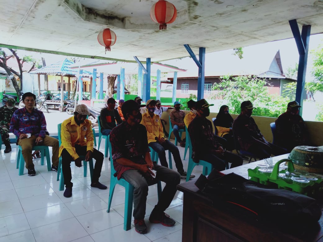 Bhabinkamtibmas dalam kesempatan ini memberikan himbauan kepada Peserta rapat Musdes untuk mematuhi protokol kesehatan guna memutus mata rantai penyebaran ( Covid 19 ).
