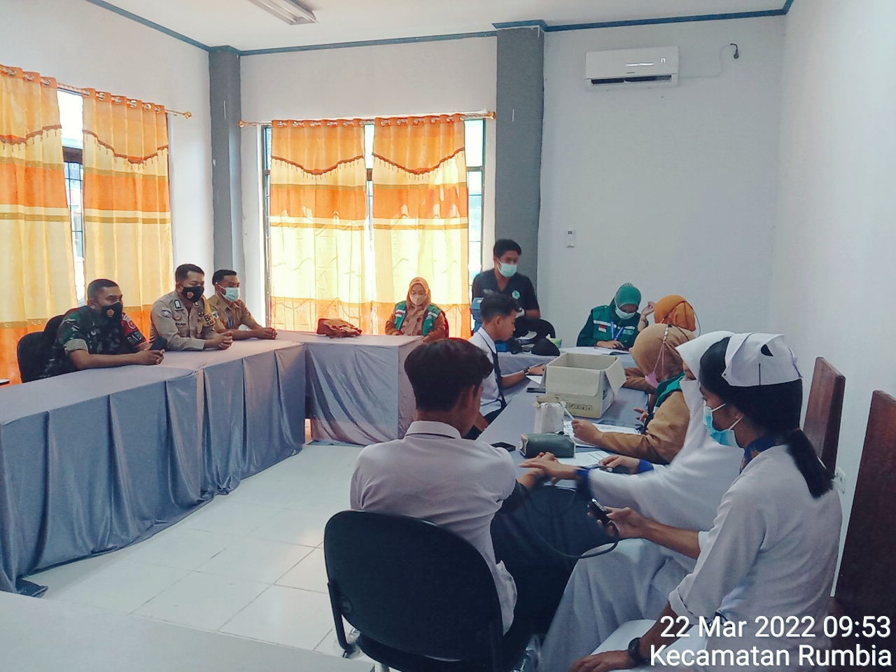 Kegiatan yang berlangsung dengan tetap menerapkan protokol kesehatan ketat sedangkan tim vaksinator yang turut membantu yakni dari nakes puskesmas rumbia.