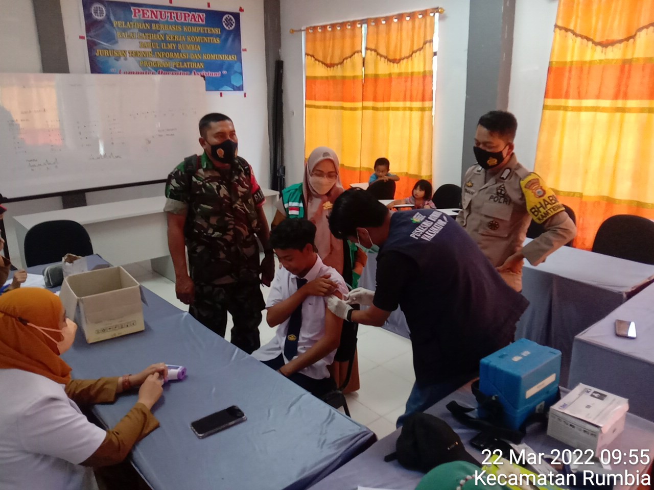 Kegiatan rutin Bhabinkamtibmas Bripka Sufirman selain menyambangi warga binaannya juga rutin memantau setiap kegiatan yang terlaksana termasuk kegiatan vaksinasi covid-19 yang kali ini terlaksana bagi anak usia 6-12 tahun maupun warga sekitar sekolah.