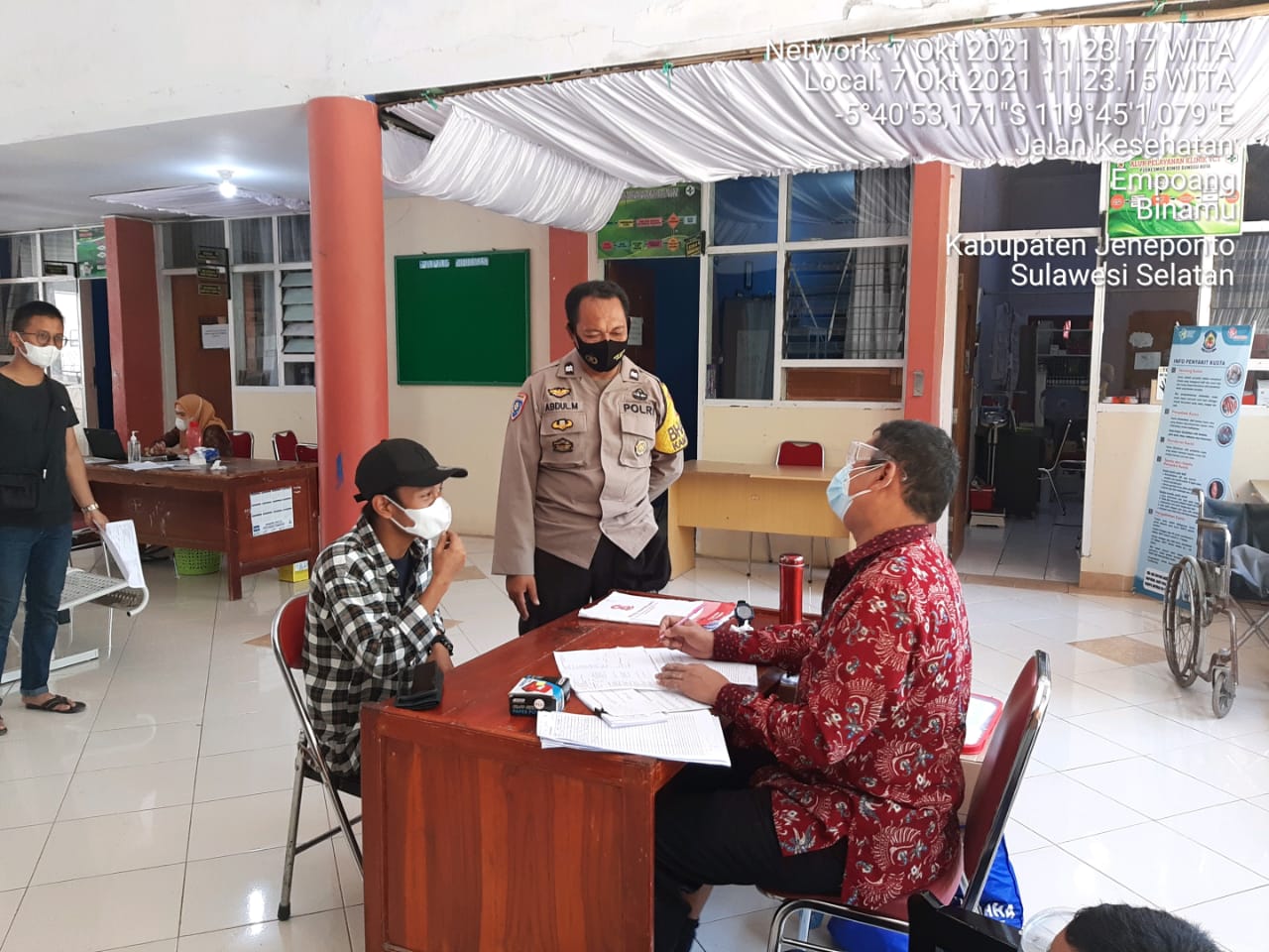 PENJURU. ID | Jeneponto – Bhabinkamtibmas Kelurahan Empoang AIPTU ABDUL MUTHALIB melaksanakan sambang dikantor Puskesmas Bontosunggu Kota, Kamis 07 Oktober 2021 sekitar pukul 11:20 Wita s/ d selesai.