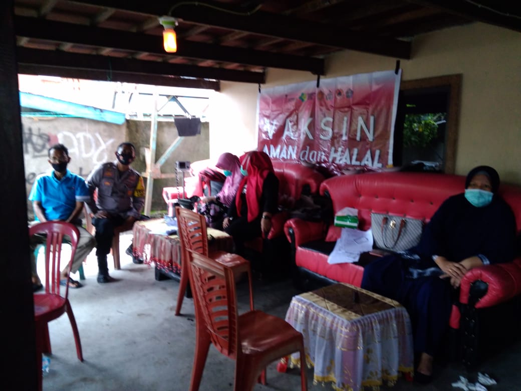 Pemantauan kegiatan Vaksin sekaligus pengamanan. Di lokasi terpantau Bhabinkamtibmas ikut memberikan himbauan kepada warga tentang wajib mematuhi protokol kesehatan.