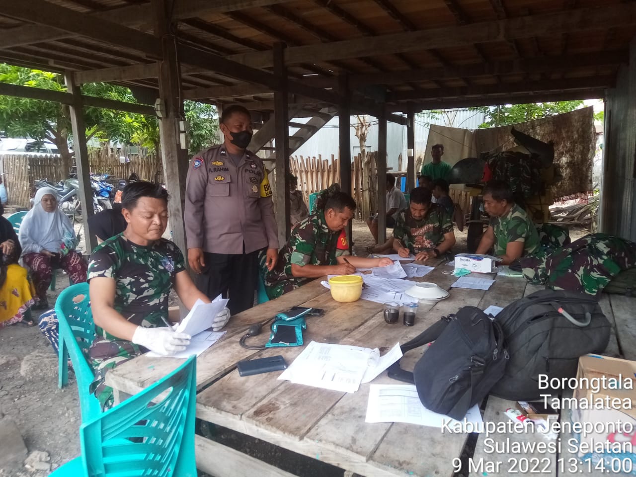 Dalam kunjungannya mengawal dan memantau pelaksanaan pemberian vaksinasi covid-19 baik dosis 1,2 dan lanjutan 3 (booster) bagi warga desa borongtala, Rabu (9/3/2022)