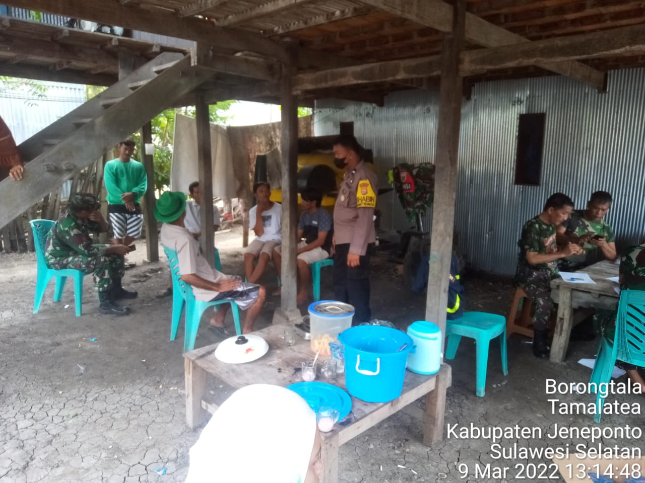 PENJURU. ID | Jeneponto – Sinergitas Bhabinkamtibmas Aipda Abd Rahim bersama Babinsa Serda Rahmat melaksanakan sambang kewilayah binaan Bertempat di Dusun Tobereka Desa Borongtala Kecamatan Tamalatea.