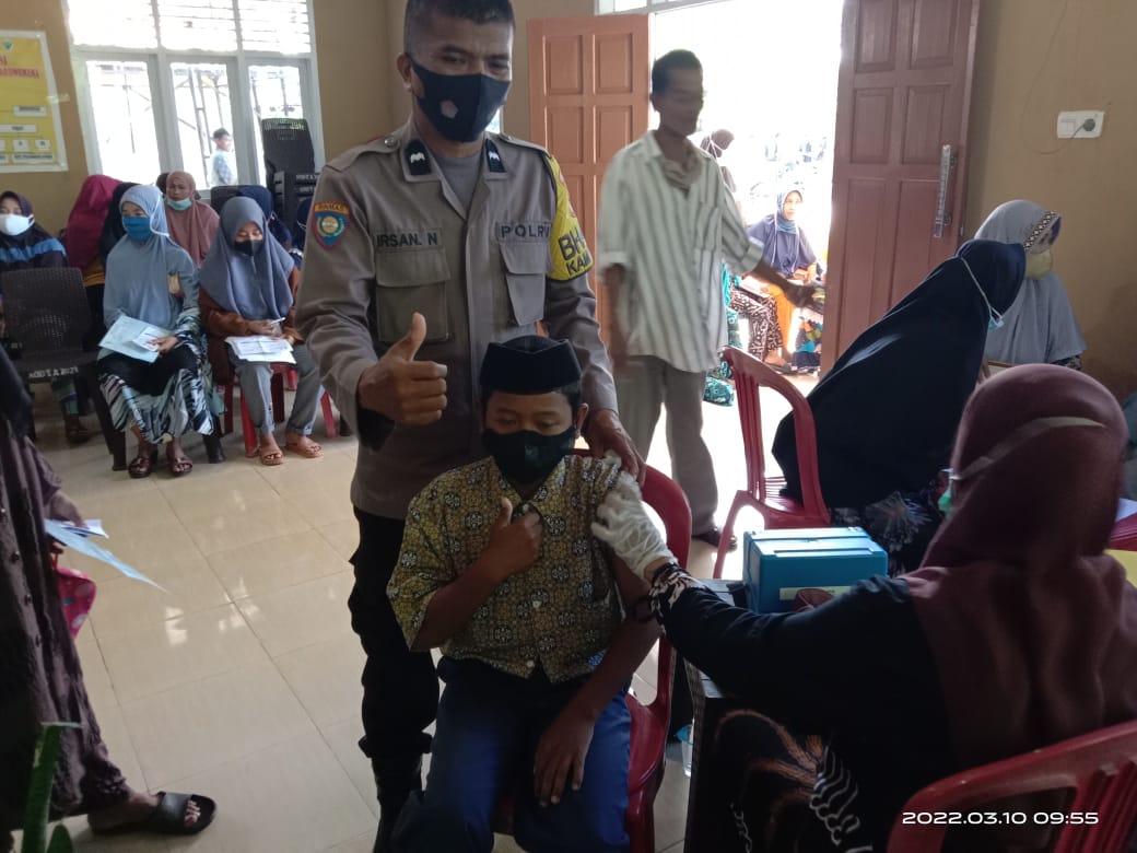 Disela penerimaan BNTP dan pemberian vaksinasi ini, Aipda Irsan Nusu selaku Bhabinkamtibmas turut menyampaikan pesan kamtibmas kepada warga untuk selalu disiplin mematuhi protokol kesehatan.