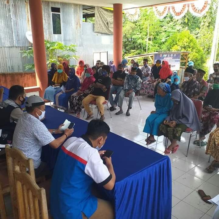 PENJURU. ID | Jeneponto – Bhabinkamtibmas Polsek Kelara Polres Jeneponto Bripka Siswandi hadiri penyaluran BLT-DD (Dana Desa) Desa Bontolebang, Kecamatan Kelara, Kabupaten Jeneponto, Kamis (22/04/2021).