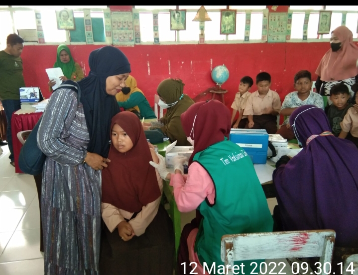 PENJURU. ID | Jeneponto – Bhabinkamtibmas Bripka Kurniadi memantau pelaksanaan vaksinasi covid-19 secara massal Berlokasi di Lingkungan Ujung Loe Kelurahan Biringkasi Kecamatan Binamu tepatnya di SD ujungloe, Sabtu (12/3/2022)