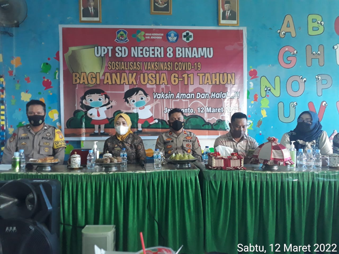 Dalam kesempatannya, Kapolsek Binamu juga menambahkan himbauan kepada orang tua siswa bahwa vaksin yang diberikan aman dan halal.