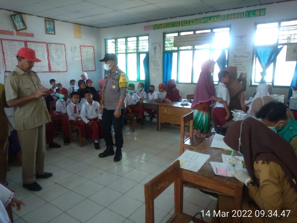 Bhabinkamtinmas juga menambahkan himbauan kepada orang tua siswa bahwa vaksin yang diberikan aman dan halal.