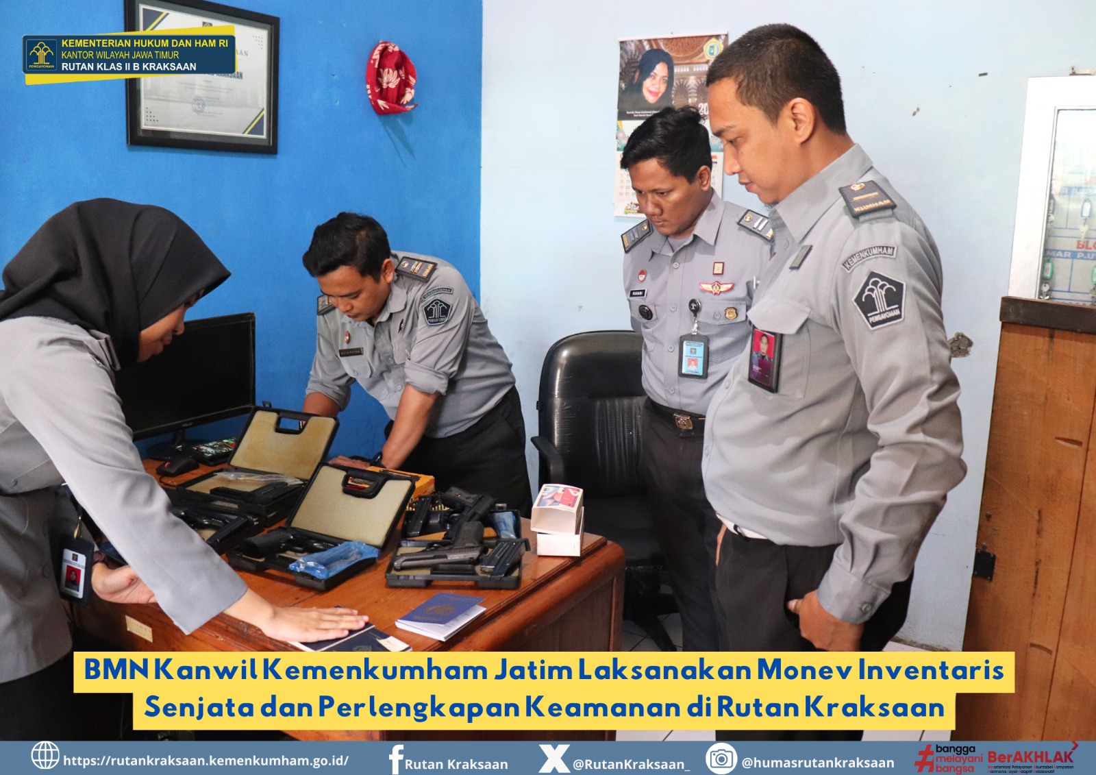 PENJURU.ID | Probolinggo – Rumah Tahanan Negara (Rutan) Kelas IIB Kraksaan Kanwil Kememkumham Jawa Timur hari ini, Senin (10/06/2024) menerima kunjungan dari tim Barang Milik Negara (BMN) Kanwil Kemenkumham Jatim. Tujuan dari kunjungan tersebut adalah untuk melaksanakan monitoring dan evaluasi (monev) terhadap pengelolaan inventaris senjata dan perlengkapan keamanan di lingkungan Rutan Kraksaan.