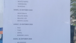 ” Senin 26 Oktober 2020. Desa Arungkeke, Togo-Togo, Camba-Camba, Kaluku. Kami menjadwalkan Pelayanan ini guna untuk mengantisipasi perkerumungan Warga.” jelas Firman