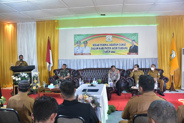 Pada kesempatan tersebut Bupati Aceh Tamiang Mursil SH MKn melalui Drs. Asra menyampaikan, sertijab ini sangat penting dilakukan, mengingat jabatan Camat merupakan pemimpin kewilayahan. Camat baru perlu diantar ke wilayahnya, untuk diperkenalkan kepada Datok Penghulu, Kepala Mukim dan masyarakatnya. Jabatan Camat adalah universal, mengurus semua hal yang ada di wilayahnya, kecuali empat hal, pertama pertahanan, moneter, hubungan luar negeri dan peradilan,”terangnya.