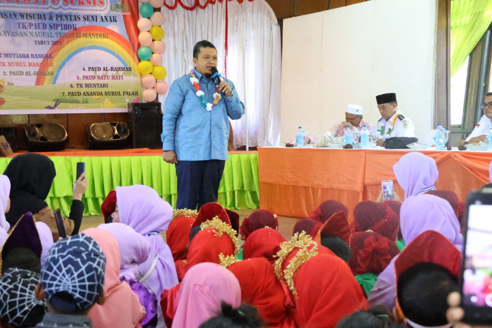 Di mana, kata Bupati, di dalam instruksi tersebut menyebutkan agar transisi PAUD ke Sekolah Dasar (SD) lebih menyenangkan, sebut Dolly saat menghadiri pelepasan Wisuda dan Pentas Seni Anak TK/PAUD Sipirok Yayasan Naufal Teratai Mandiri Tahun 2023 di Aula Hotel Tor Sibohi, Kecamatan Sipirok, Rabu (14/6).