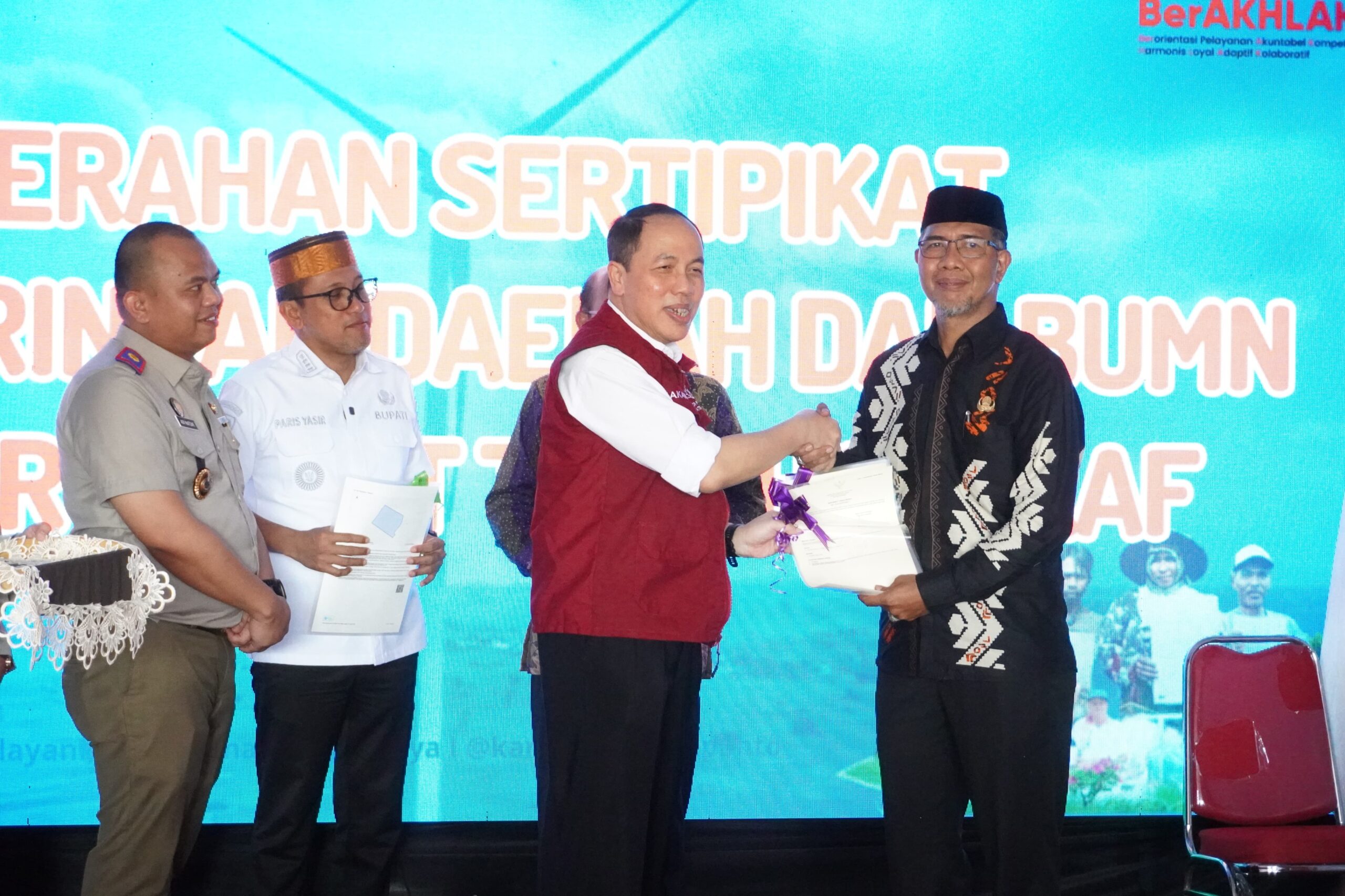 Rangkaian kegiatan ditandai dengan penyerahan sertifikat tanah kepada masyarakat serta pemasangan patok tanda batas tanah secara simbolis.