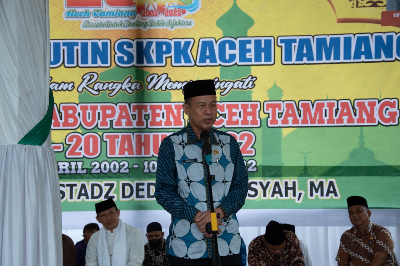 Acara Pengajian Rutin Akbar kemarin digelar dalam rangka menyambut HUT ke-20 Kabupaten Aceh Tamiang yang jatuh setiap tanggal 10 April. Pengajian rutin kali ini dipusatkan di tribun lapangan upacara kantor Bupati dan dihadiri seribuan ASN dan PDPK/tenaga honorer dari seluruh SKPK.