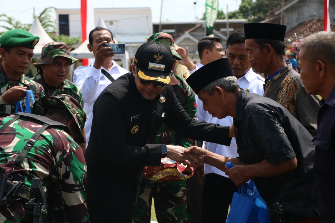 PENJURU.ID | Probolinggo – Usai pelaksanaan upacara pembukaan TNI Manunggal Membangun Desa (TMMD) ke-128 Tahun 2026, Bupati Probolinggo dr. H. Muhammad Haris, M.Kes., didampingi Kasrem 083/Baladika Jaya Letkol Inf Rahmad Cahyo Dinarso, Dandim 0820/Probolinggo Letkol Inf Ribut Yodo Aprianto, serta jajaran Forum Pimpinan Daerah (Forpimda) Kabupaten Probolinggo, menyerahkan bantuan sosial berupa paket sembako kepada warga kurang mampu.