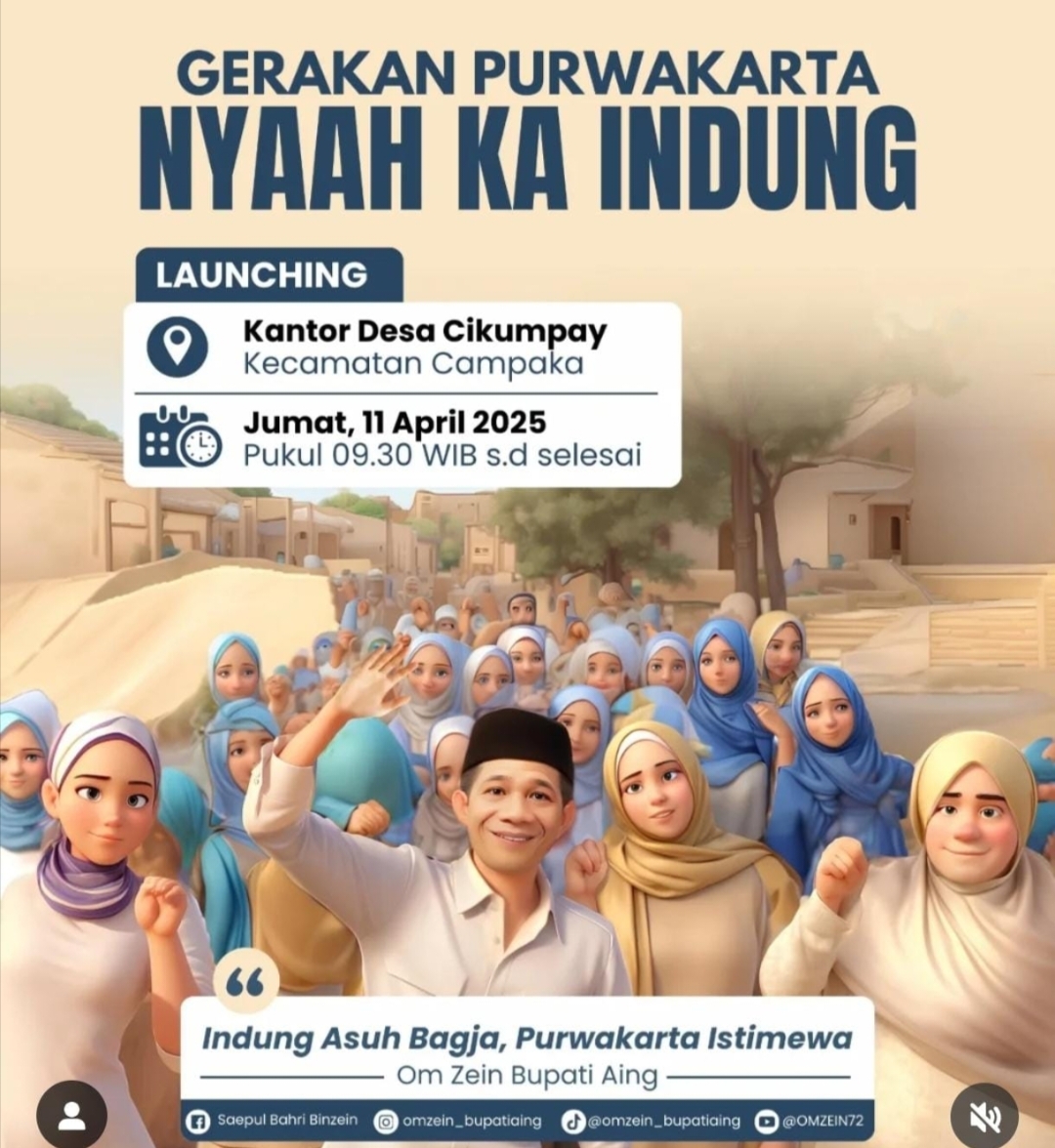 PURWAKARTA, PENJURU-ID,//-Bupati Purwakarta, Jawa Barat, Saepul Bahri Binzein dalam waktu dekat akan meluncurkan kembali program terbarunya yaitu Gerakan Purwakarta Nyaah Ka Indung, yang akan diresmikan pada Jum’at 11 April 2025, bertempat di Kantor Desa, Cikumpay Kecamatan Campaka.