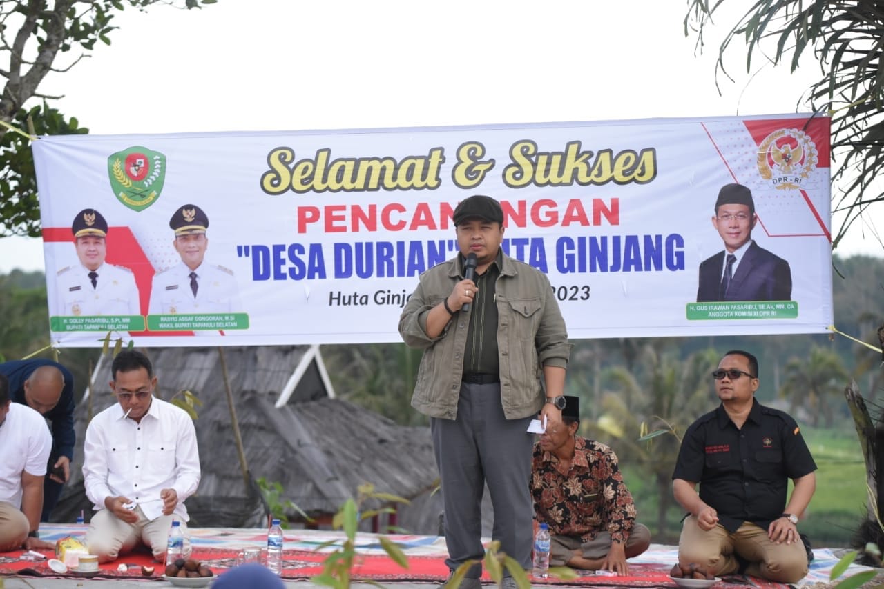 Sebelum pencanangan Desa Huta Ginjang sebagai Desa Durian, Bupati Tapsel bersama Komisi XI DPR RI beserta rombongan melaksanakan penanaman pohon Durian Musang King. Serta di lanjutkan dengan penyerahan bibit pohon durian kepada seluruh masyarakat Desa Huta Ginjang.