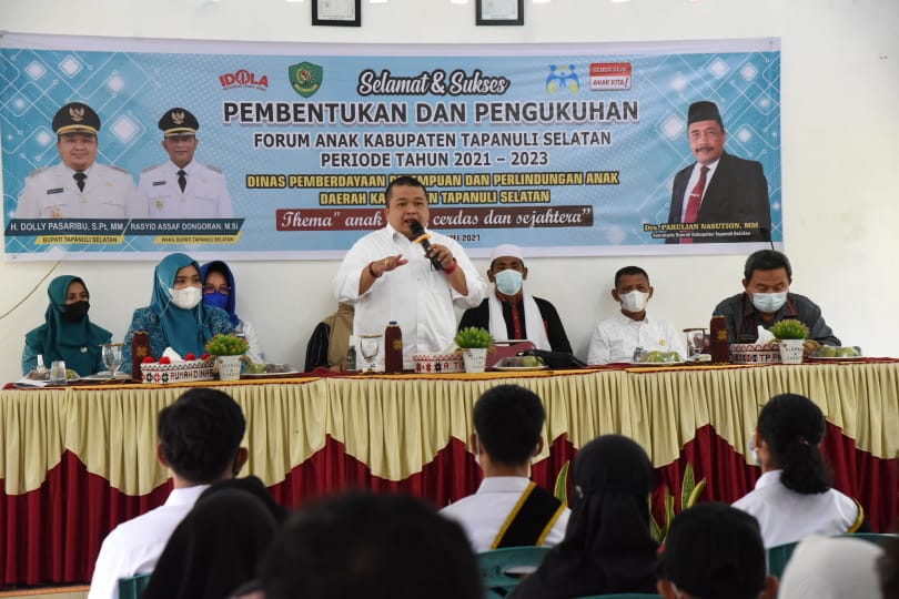 PENJURU.ID | TAPSEL – Bupati Tapanuli Selatan (Tapsel) H Dolly Pasaribu, S.Pt, MM, menegaskan, pembentukan forum anak, sebagai bagian dari kabupaten layak anak (KLA), harus mampu menjadi wadah kreativitas bagi anak-anak generasi emas Tapsel. Hal itu bertujuan agar anak-anak Tapsel berpikir kreatif, menyalurkan bakatnya dan mengembangkan kepribadiannya sehingga mampu menemukan solusi terhadap masalah sosial pada anak.