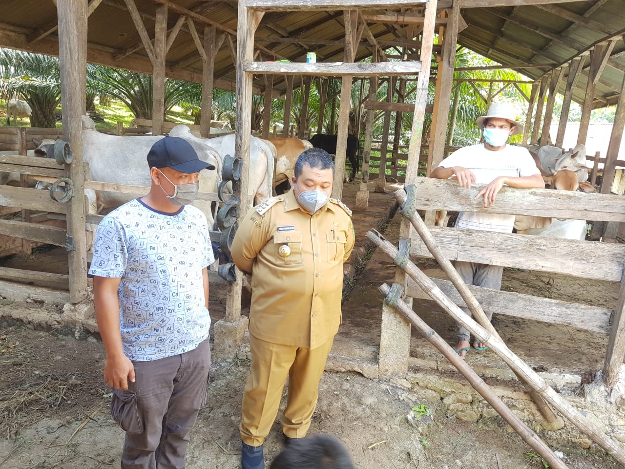 PENJURU.ID | TAPSEL-Bupati Tapanuli Selatan (Tapsel) H Dolly Pasaribu SPt MM meninjau lokasi kandang tempat penyimpanan sapi kurban yang akan didistribusikan ke-15 kecamatan untuk disembelih pada Hari Raya Idul Adha 1442 H di Desa Huta Godang, Kecamatan Batang Toru, Kabupaten Tapsel, Senin (19/7).