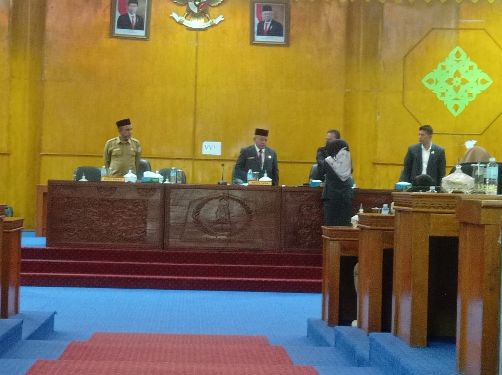 PENJURU.ID | Aceh Bupati Aceh Tamiang Mursil SH MKn melalui Wakil Bupati T. Insyafuddin ST sampaikan jawaban atas pandangan umum anggota Dewan Perwakilan Rakyat Kabupaten (DPRK). Kegiatan berlangsung diruang sidang utama gedung DPRK Aceh Tamiang pada Senin (25/07/2022).