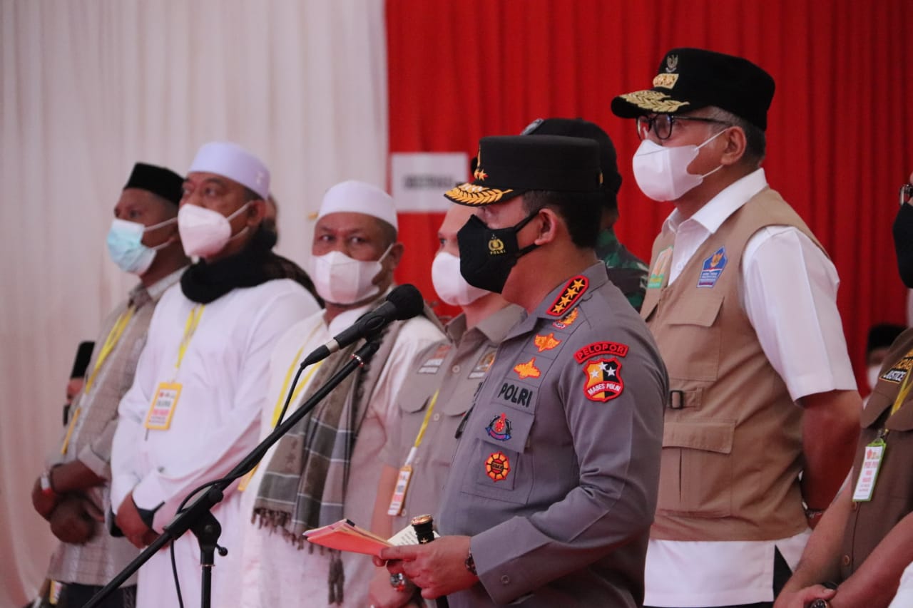 PENJURU. ID | Aceh – Kapolri Jenderal Listyo Sigit Prabowo meninjau akselerasi percepatan vaksinasi di Pidie Convention Center, Kabupaten Pidie, Aceh, Sabtu (26/2/2022). Dalam kegiatan ini, Sigit juga terhubung secara virtual dengan 6.441 titik di 34 Provinsi Indonesia yang juga melaksanakan vaksinasi.