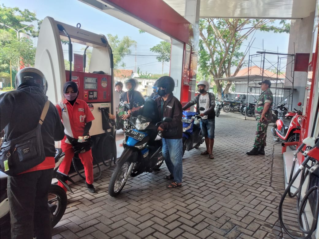 PENJURU.ID | Probolinggo – Babinsa Koramil 0820/22 Dringu Serda Imam Holidi, melaksanakan kegiatan Monitoring serta Pengamanan kepada Masyarakat dalam Antrian Bahan Bakar Minyak (BBM) guna menjamin masyarakat Kondusif dalam Antrian pembelian BBM di SPBU dan Meminimalisir adanya Potensi Gangguan Kamtibmas.bertempat SPBU di Desa Kalisalam, Kecamatan Dringu Kbuapaten Probolinggo, Minggu (17/09/2022).