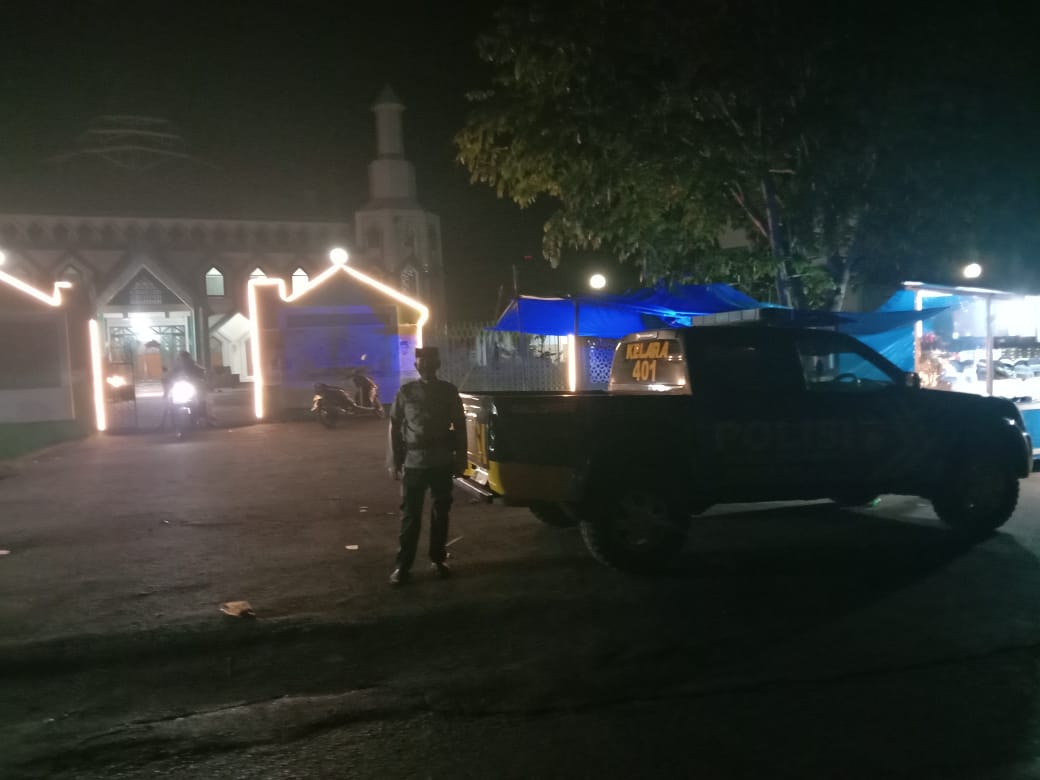 Personel Polsek Kelara Polres Jeneponto melaksanakan kegiatan pengamanan shalat tarawih di masjid yang berada di wilayah hukum Kecamatan Kelara dan Kecamatan Rumbia, Jum’at (8/4/2022).