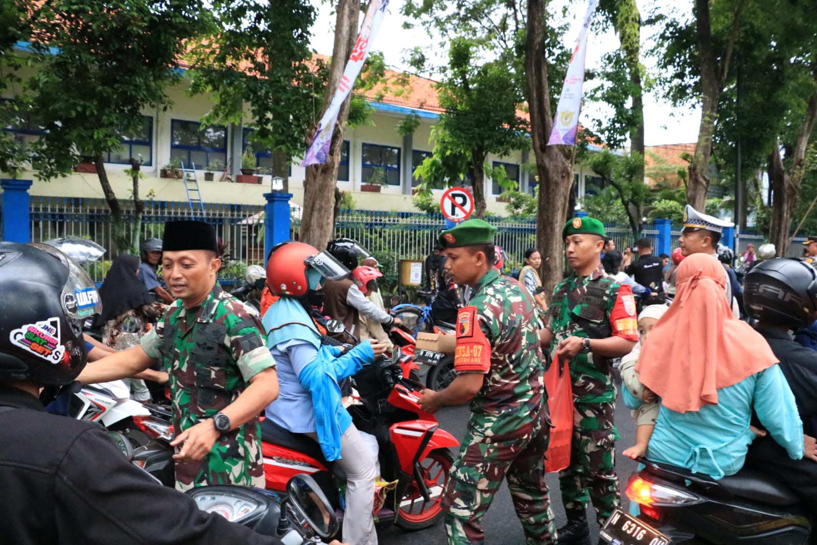 PENJURU.ID | Probolinggo – Betempat ruas Jalan Panglima Sudirman tepatnya di depan Gedung Meteor Kota Probolinggo, Kodim 0820/Probolinggo berkolaborasi dengan Polres Probolinggo Kota membagikan takjil gratis kepada para penguna jalan.