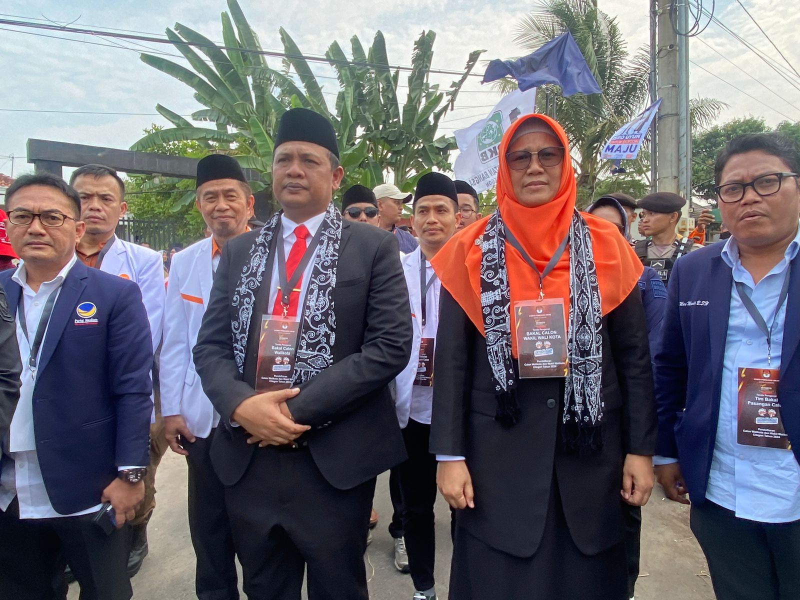 Cilegon.penjuru.id. Koalisi Partai Nasdem dan PKS yang mengusung Cilegon Maju mengantarkan pasangan calon Wali Kota Cilegon Isro Mi’raj dan Calon Wakil Wali Kota Cilegon Nurrotul Uyun untuk mendaftar sebagai kontestan dalam Pilkada Kota Cilegon 2024 ke KPU kota Cilegon. Berbekal rekomendasi Partai NasDem dan Partai Keadilan Sejahtera, pendaftaran Isro-Uyun di KPU Cilegon dilakukan pada Rabu, 28 Agustus 2024 dengan dikawal ribuan relawan dan kader partai.