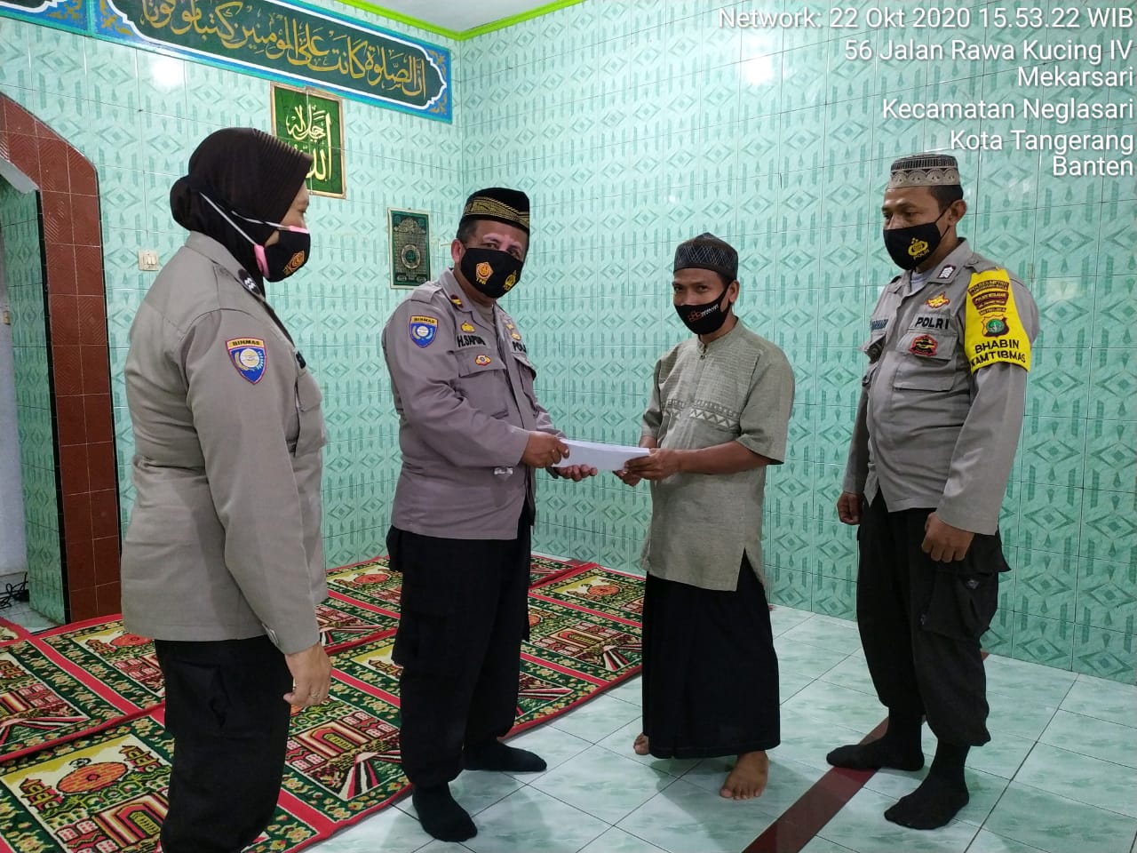 “Kanit Bimas, Iptu Sapuan menyerahkan bantuan santunan anak yatim dari Bapak Kapolres Metro Tangerang Kota (Kombes Pol Sugeng Haryanto) sebesar Rp 2 juta, yang diterima langsung oleh pengurus Yayasan, Ustadz Iwan Hermawan,” terangnya.