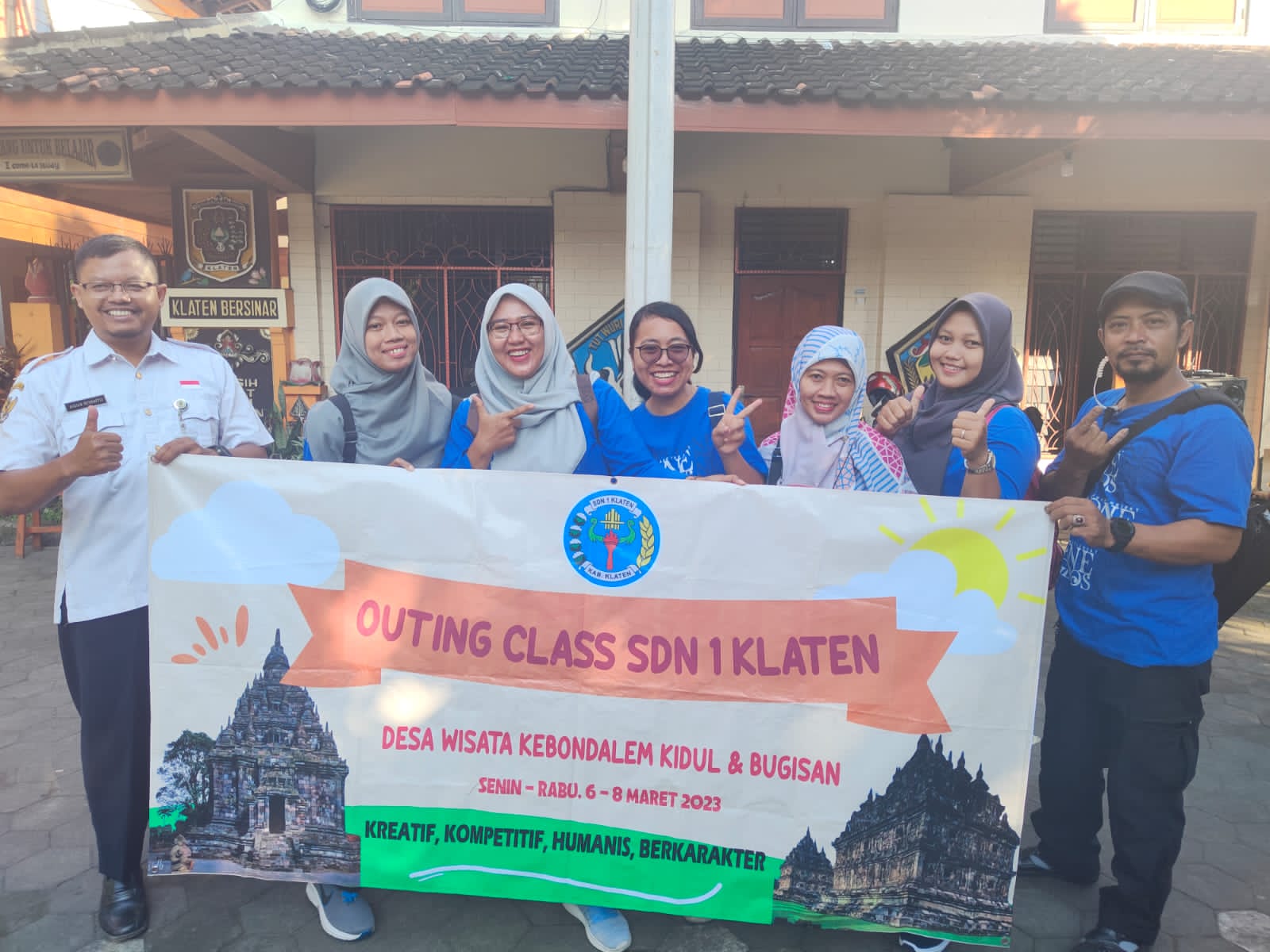 SD Negeri 1 Klaten melakukan pembelajaran luar sekolah (kelas), atau lebih keren dan populernya “outing class”. Kegiatan ini dilaksanakan di Desa Wisata Bugisan dan Candi Sojiwan di Kecamatan Prambanan, Kabupaten Klaten.