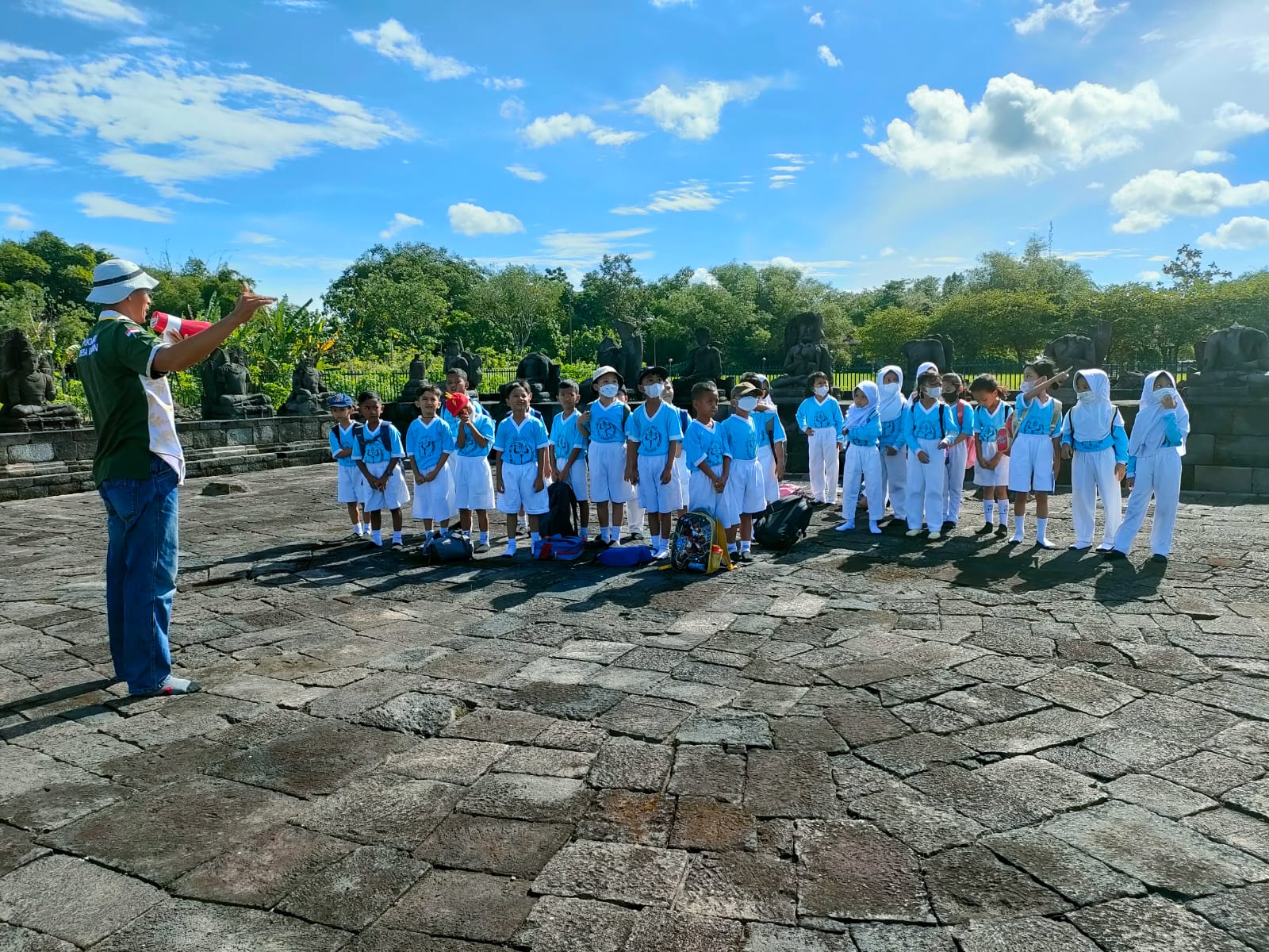 Kami mengajak seluruh siswa dari kelas 1-6 untuk ikut ke Desa Wisata Bugisan dan Candi Sojiwan dengan didampingi Guru dan Kepala Sekolah Paguyuban dan Komite. Kenapa kami memilih ke wisata sini,para siswa paham akan nilai budaya yang tinggi, sehingga perlu dikenalkan pada siswa agar tumbuh rasa tanggung jawab untuk mencintai dan melestarikan peninggalan sejarah, warisan budaya bangsa. Pungkas Sevia