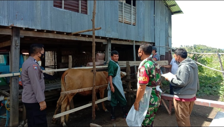 “Hal itu sebagai upaya dalam mencegah dan meminimalisir terjangkitnya hewan ternak dari penyakit mulut dan kuku.”ujar Aiptu H.Hamzar