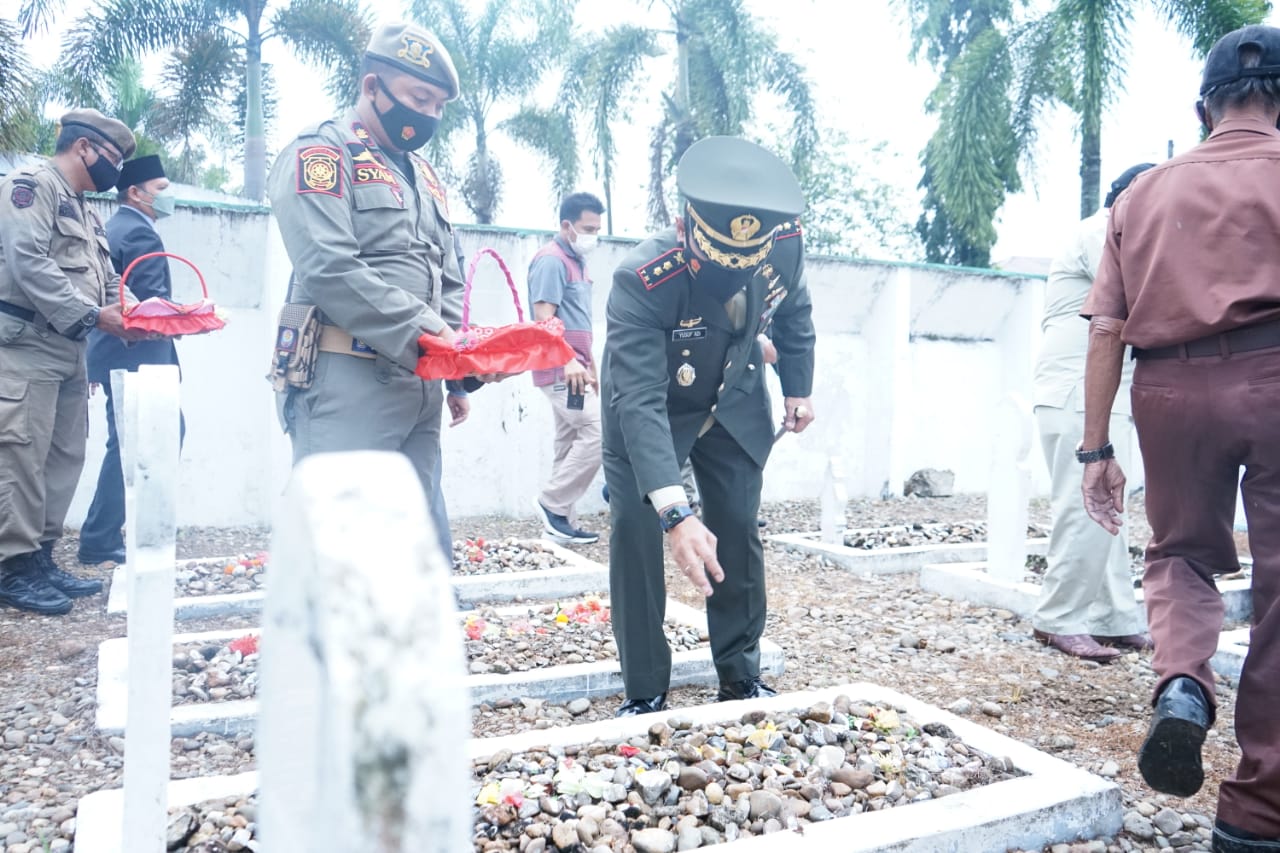 PENJURU.ID | Aceh Tamiang – Komandan Kodim 0117/Aceh Tamiang Letkol Cpn Yusuf Adi Puruhita memimpin langsung upacara Ziarah Nasional peringatan Hari Pahlawan Nasional di Kabupaten Aceh Tamiang. Upacara berlangsung di Taman Makam Pahlawan Kota Kuala Simpang, Kabupaten Aceh Tamiang. Rabu (10/11/2021)