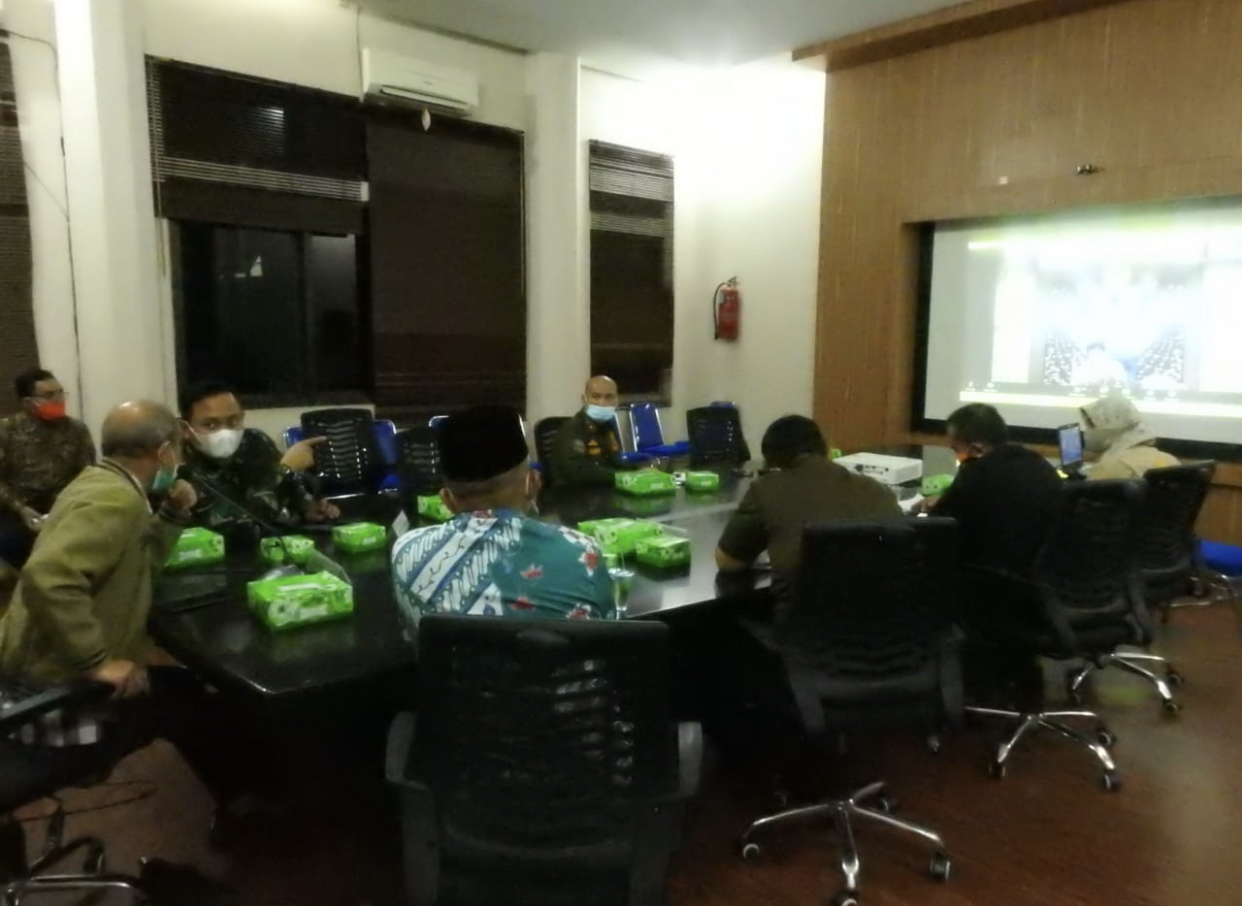 PENJURU.ID | Aceh Tamiang – Komandan Kodim 0117/Aceh Tamiang, Letkol Cpn Yusuf Adi Puruhita bersama Forkopimda Aceh Tamiang melaksanakan vidcon dengan jajaran menteri diantaranya Menkeu, Mendagri, Mendik dan Kepala BNPB pada senin malam pukul 19:00 WIB bertempat di Aula Sekdakab kantor Bupati Jln.Ir. H.Juanda, Desa. Bundar, kecamatan. Karang baru, kabupaten. Aceh Tamiang. Selasa (15/06/2021).