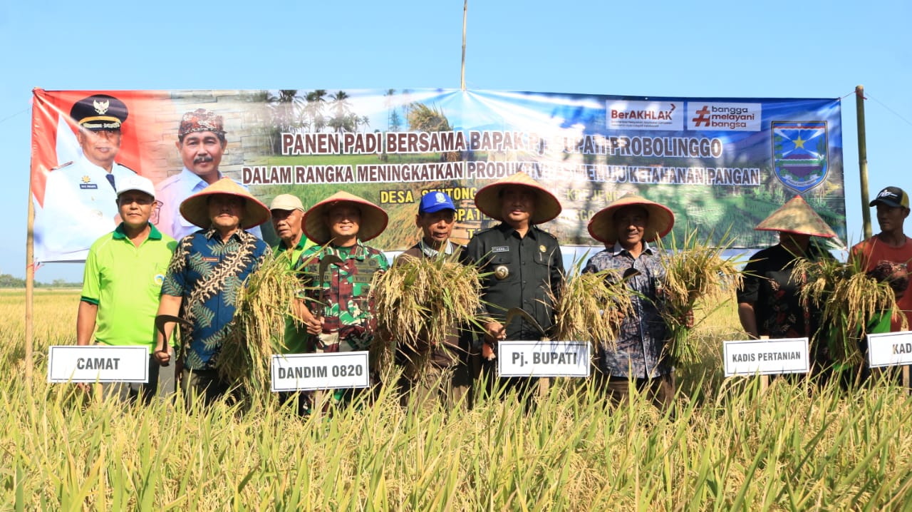 Pada momentum tersebut, Dandim 0820/Probolinggo Letkol Arm Heri Budiasto dan Pj Bupati Ugas bersama Plt Kepala Dinas Pertanian Kabupaten Probolinggo Yahyadi dan Camat Krejengan Bambang Heriwahjudi berkesempatan melaksanakan panen padi bersama secara simbolis pada lahan persawahan Kelompok Tani Kramat Jaya seluas 15 hektar.