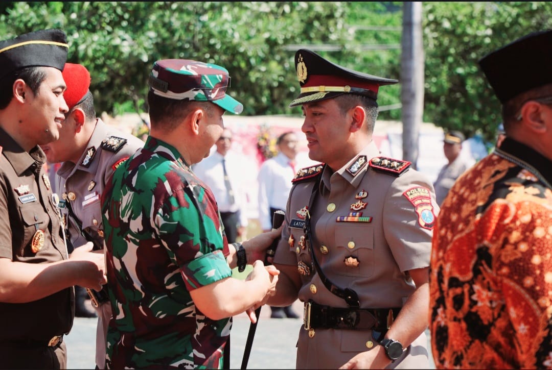 PENJURU.ID | Probolinggo – Kodim 0820/Probolinggo Letkol Arh Iwan Hermaya bersama jajaran forum kordinasi pimpinan daerah (Forkopimda) Kabupaten Probolinggo menghadiri serah terima jabatan (Sertijab) Kapolres Probolinggo dari AKBP Wisnu Wardana kepada AKBP M. Wahyudin Latif, Sabtu (12/7).