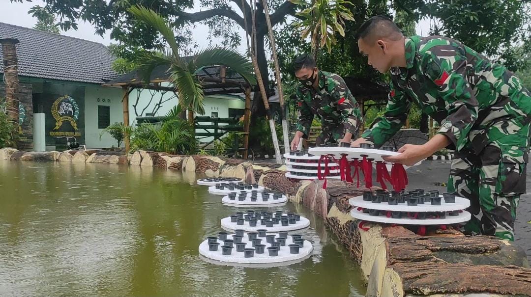 PENJURU.ID | Probolinggo – Dengan memaksimalkan lahan yang ada di komplek Makodim 0820/Pribolinggo, agar bermanfaat terutama di masa pandemi Covid-19, Komandan Kodim 0820/Probolinggo, Letkol. Inf. Imam Wibowo, memelopori jajarannya menanam hidroponik yang terbuat dari bahan limbah plastik menjadi pot kecil di atas kolam ikan milik Kodim 0820/Probolinggo, dengan maksut memaksimalkan lahan agar berdaya guna dan tepat guna serta menambah keindahan dan keasrian lingkungan, maka dibuatlah kebun hidroponik dikolam ikan Kodim 0820/Probolinggo.
