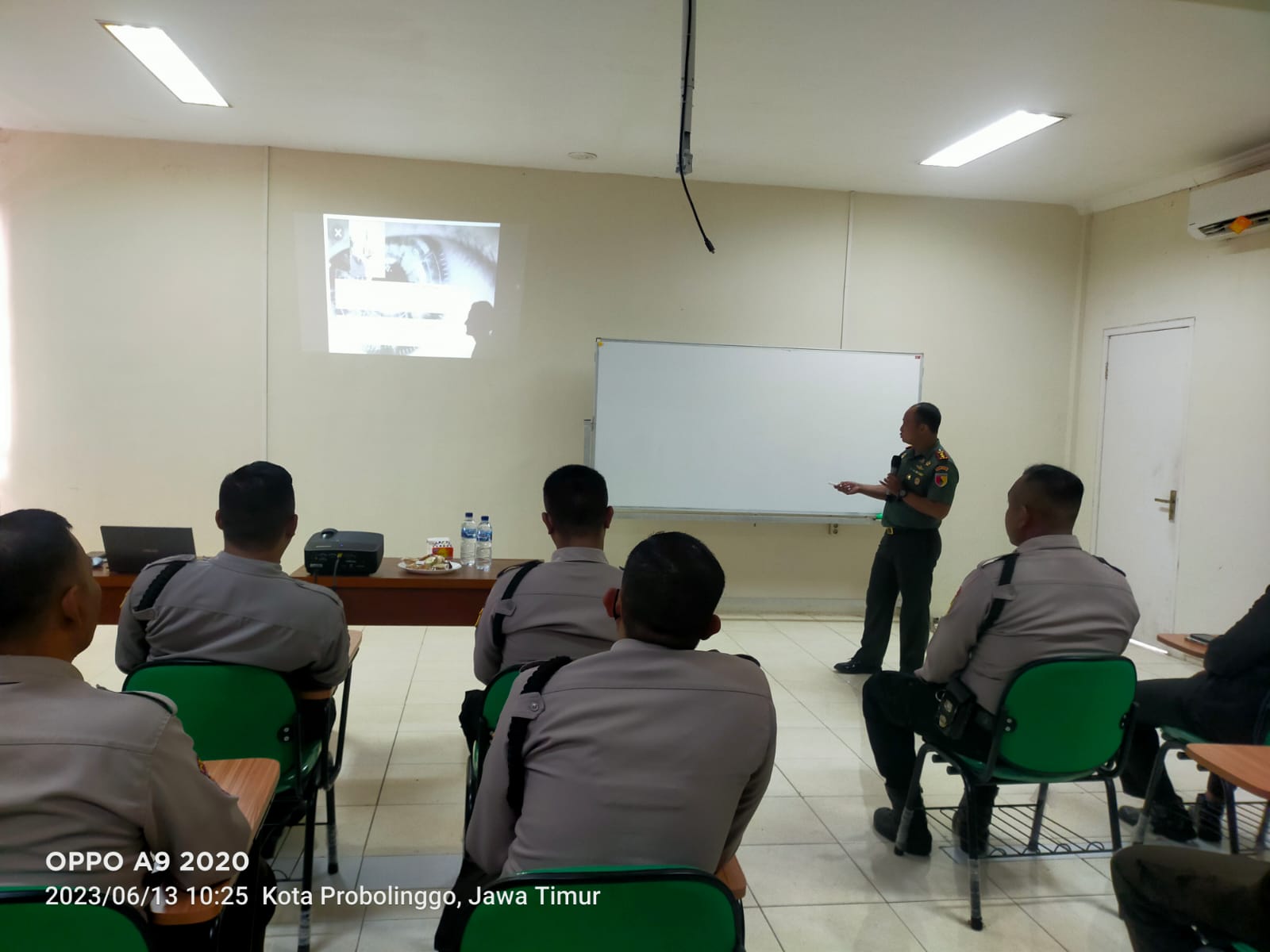 PENJURU.ID | Probolinggo – Dandim 0820/Probolinggo Letkol Arm Heri Budiasto memberikan pengarahan dan materi tentang pengamanan kepada puluhan security yang bertugas di PT. KTI(Kutai Timber Indonesia) Jln. Tanjung Tembaga Baru Kelurahan Mayangan Kecamatan Mayangan Kota Probolinggo, Selasa (13/06/2023).