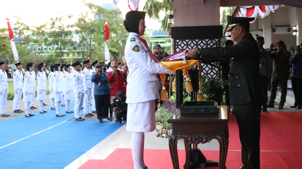 PENJURU.ID | Probolinggo – Komandan Kodim 0820/Probolinggo Letkol Arm Heri Budiasto menjadi inspektur upacara penurunan bendera merah putih peringatan HUT Ke-78 Republik Indonesia di alun-alun Kraksaan, Kabupaten Probolinggo.