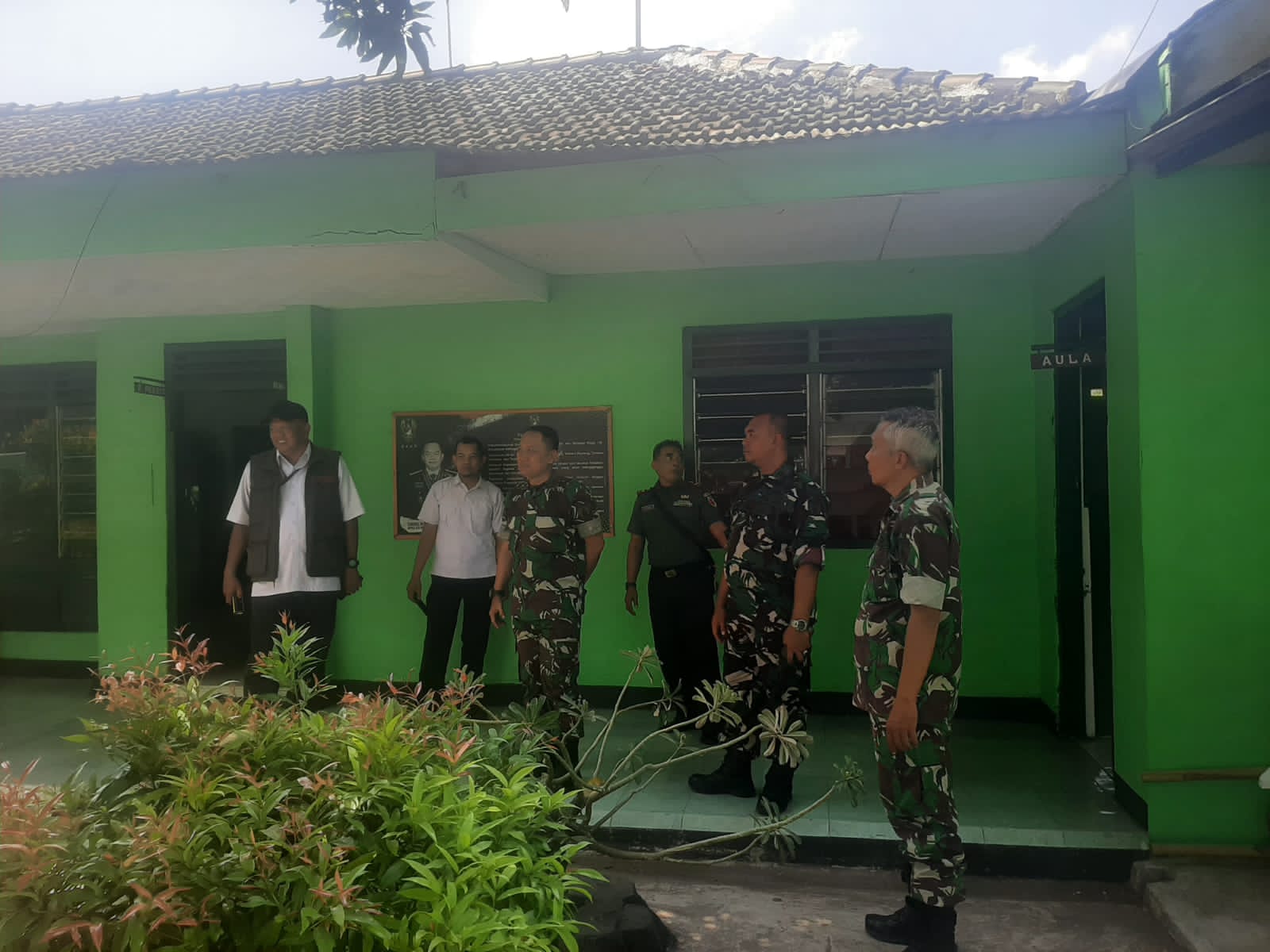 PENJURU.ID | Probolinggo – Komandan Koramil (Danramil) 0820/12 Kraksaan, Kapten Inf Asto Kuswantoro menerima kunjungan tim dari Dinas Perkim Pemerintah Kabupaten Probolinggo dalam rangka melakukan pengecekan dan pemantauan kondisi Koramil 0820/12 Kraksaan yang akan direnovasi, Kamis (31/10).