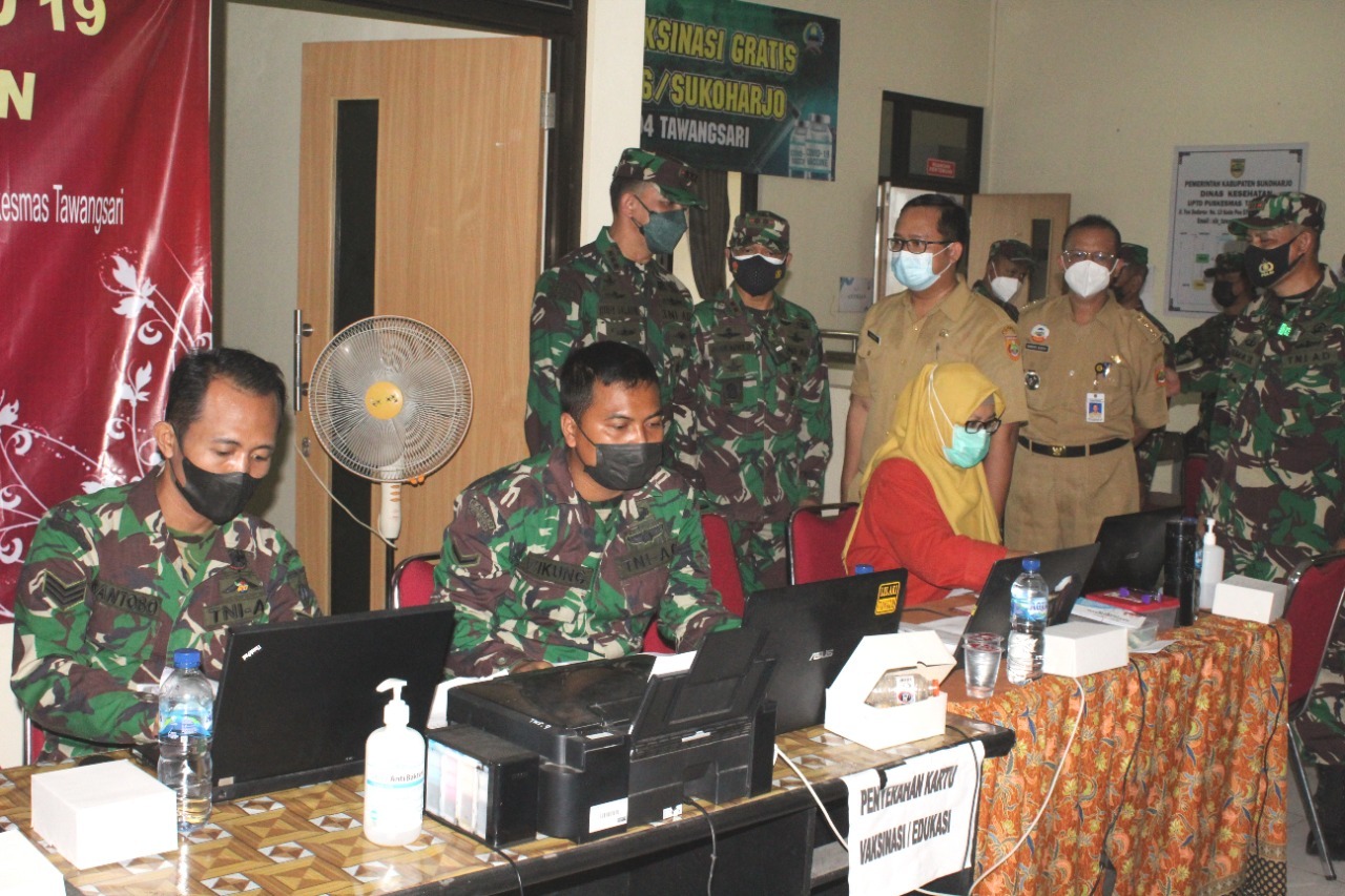 Danrem beserta rombongan tiba di Makodim 0726/Sukoharjo sekitar pukul 08.00 wib diterima langsung oleh Dandim 0726/Sukoharjo Letkol Inf Agus Adhy Darmawan, S.I.P., M.I.Pol. Setelah singgah sejenak di Makodim rombongan yang terdiri dari Letkol CKM dr. Ujang Setiawan (Dandenkesyah 4-IV Surakarta), Letkol Caj Drs. Achsin, M.Si (Kasiter Korem 074/Wrt), Mayor Inf Ronaldo Konstantin, S.Sos., MM. M.Si (Kasiops Rem 074/Wrt), Mayor Inf Suwarko (Kapenrem 074/Wrt) tersebut langsung menuju sasan di wilayah Kecamatan Tawangsari.