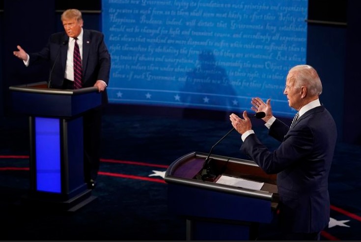 Selama kedua kandidat saling beradu kata di panggung debat namun Donald Trump sering menyelak Biden selama perdebatan. Beberapa kali Wallace perlu mengingat Presiden AS untuk memberi dia kesempatan untuk menyatakan pertanyaannya saat pergantian topik atau untuk lawannya, Biden, selesai menyampaikan bagian debatnya.